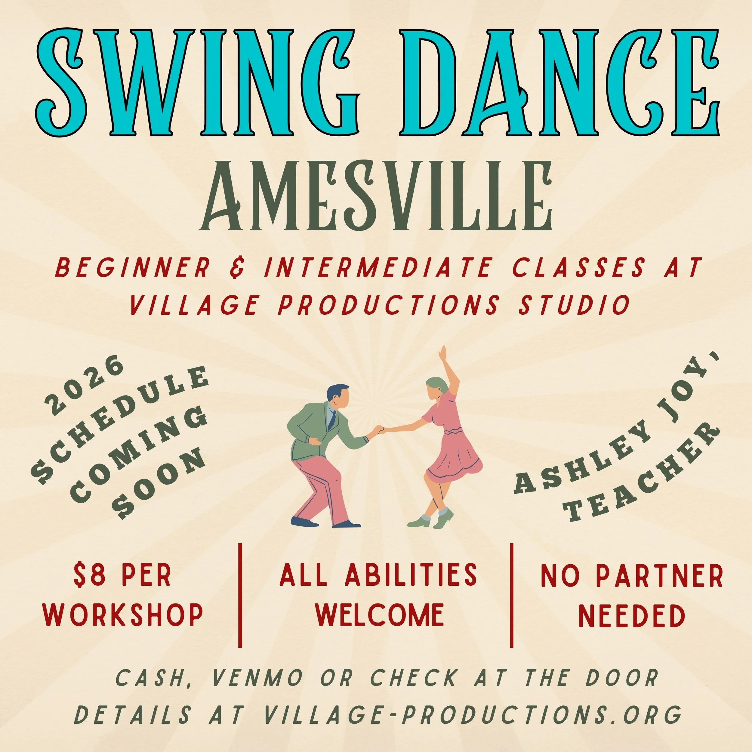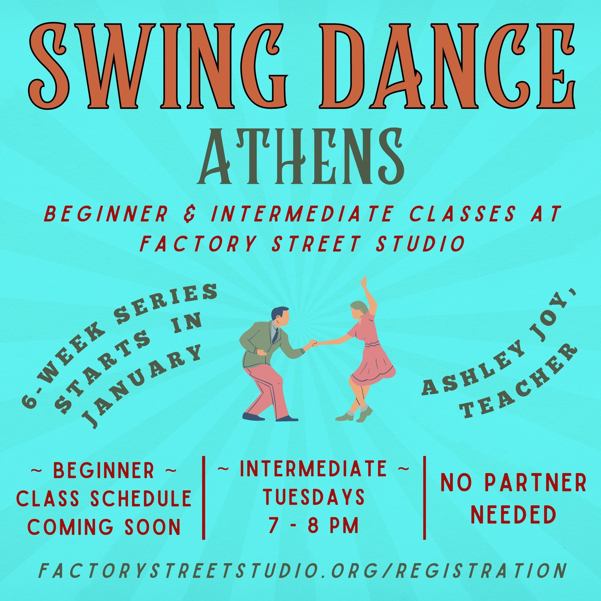 Join our growing swing dance community! After a few beginner classes, you’ll be ready to jump into the intermediate swing class, which meets right after the beginner class –– stay after the beginner class, to try it out for free!